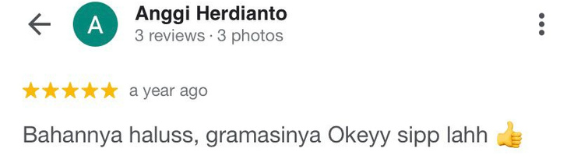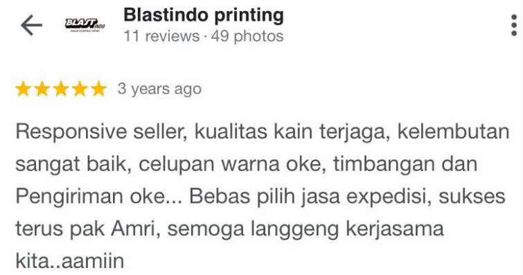 Semua Testimonial di ambil dari Google Maps Toko Bahan Kaos BSA Tekstil.
